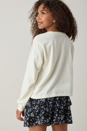 – Super comfy long sleeve tee, featuring an angel wing chest hit graphic detail, and crew neckline.