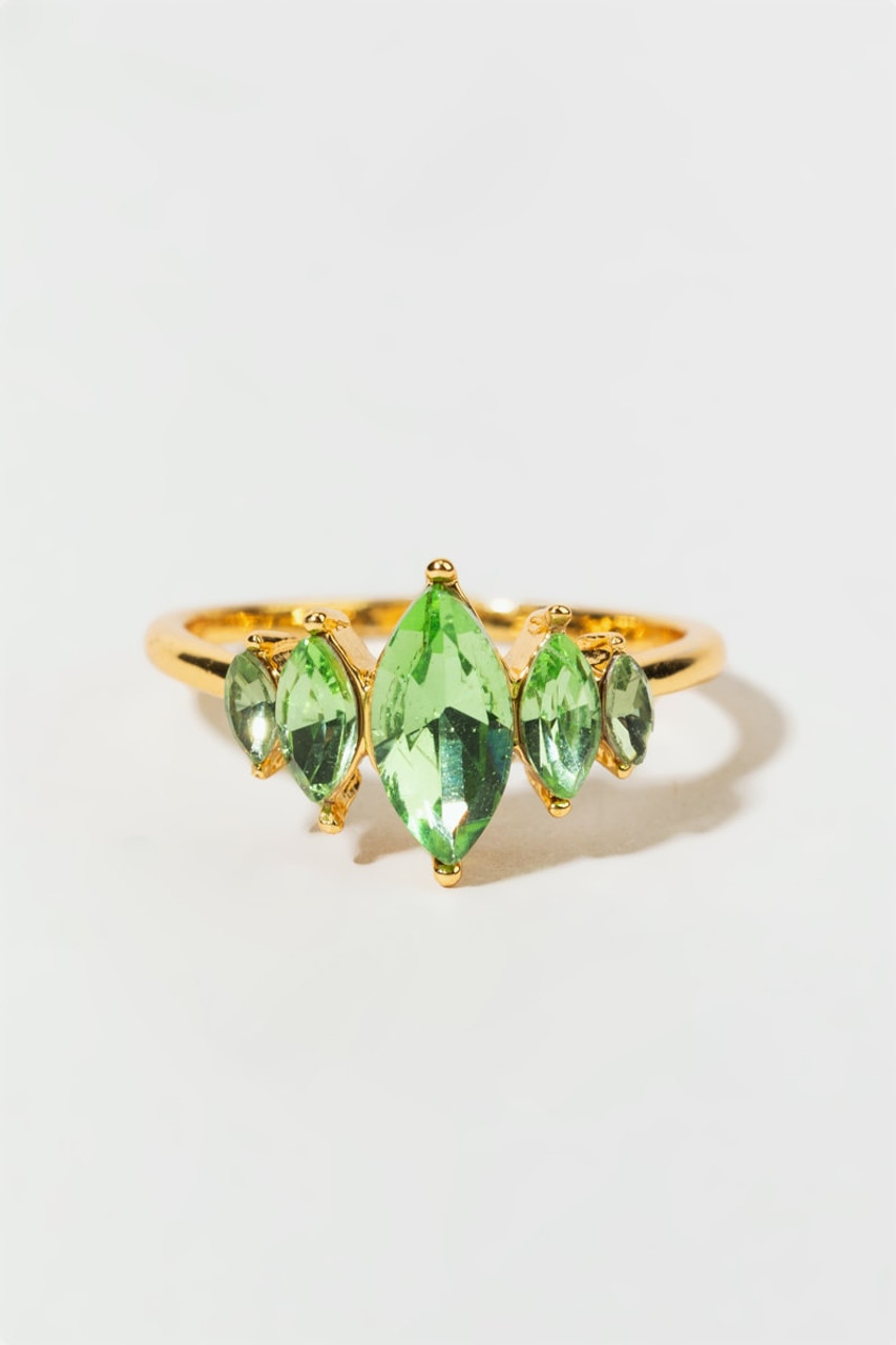 – 14K gold plating over brass metal – Glass stones – Tarnish resistant – Imported – Nickel and lead free