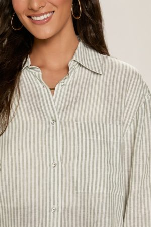 Angelina Striped Linen Button Down Top