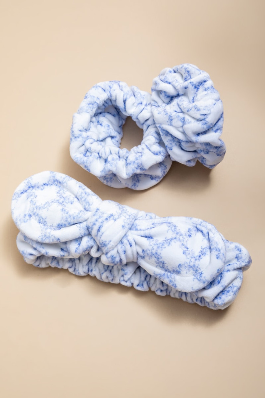 Blue Floral Print Spa Hair Set