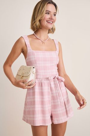 Dorothy Tie Waist Plaid Romper