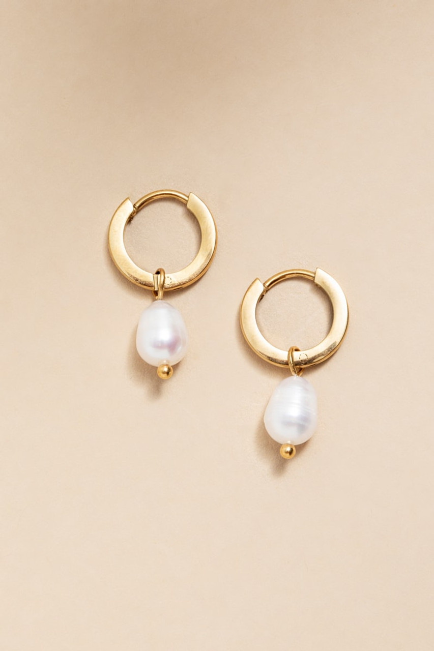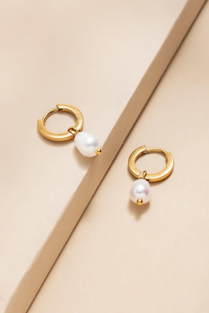 Emily Pearl Charm Stainless Steel Huggie Earrings