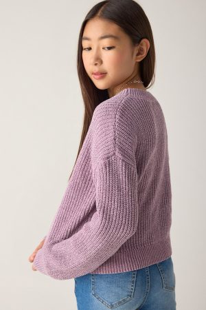 Hello Franki Chenille Crew Neck Pullover Sweater for girls
