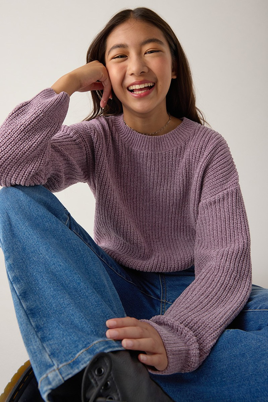 Hello Franki Chenille Crew Neck Pullover Sweater for girls