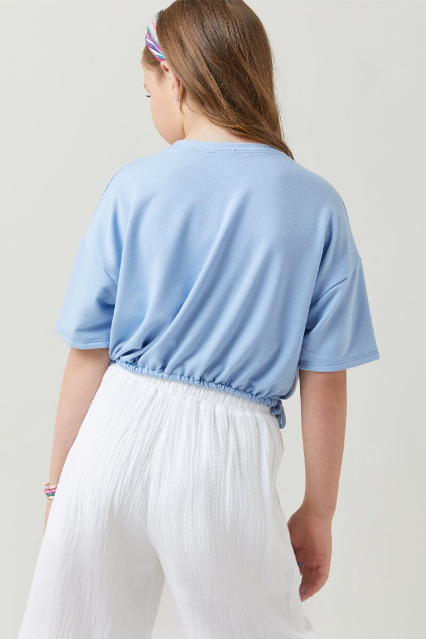– Short drop shoulder sleeves.