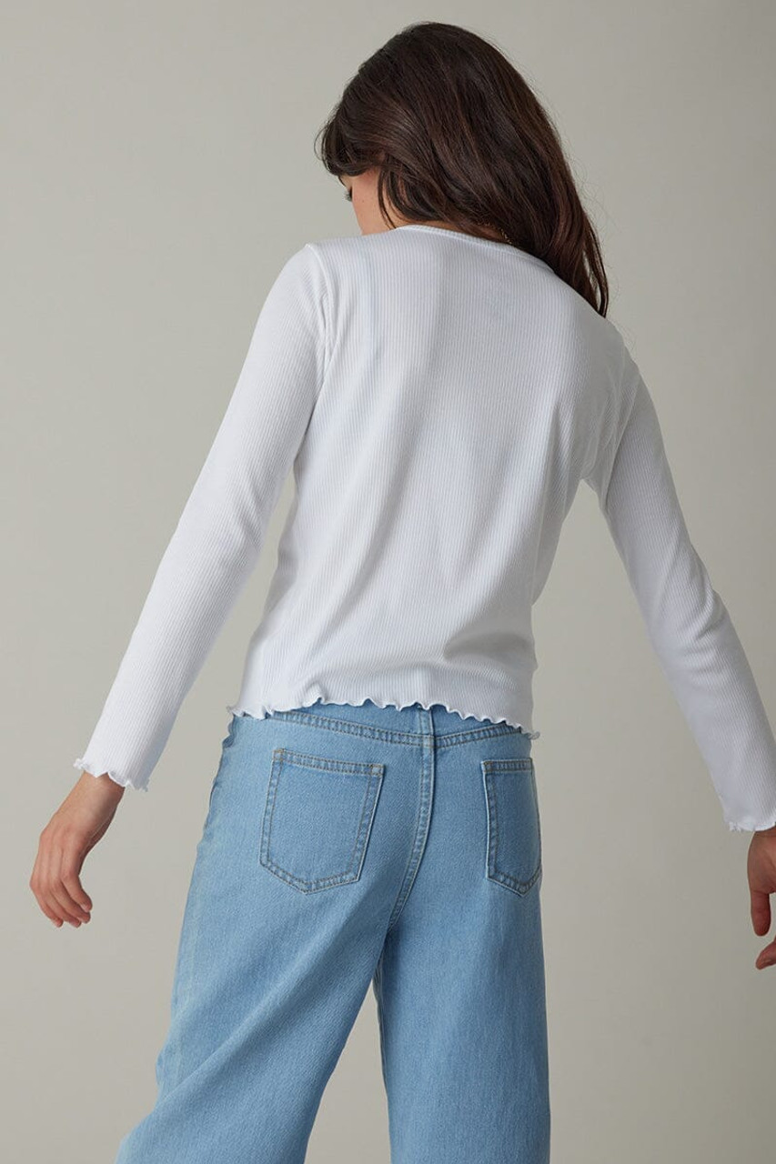 – It’s all about the details with this lettuce edge hem! Elevate your basics with this super soft & cute long sleeve t-shirt