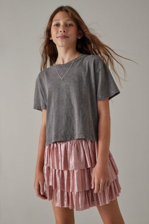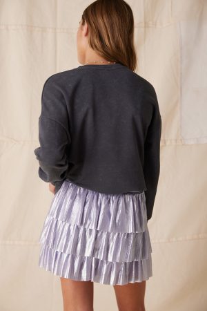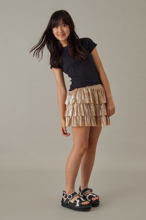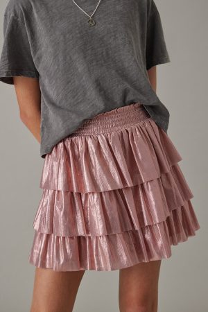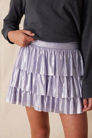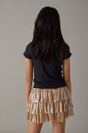 – Metallic Skirt, Elastic Waistband, Tiered Ruffle Details.