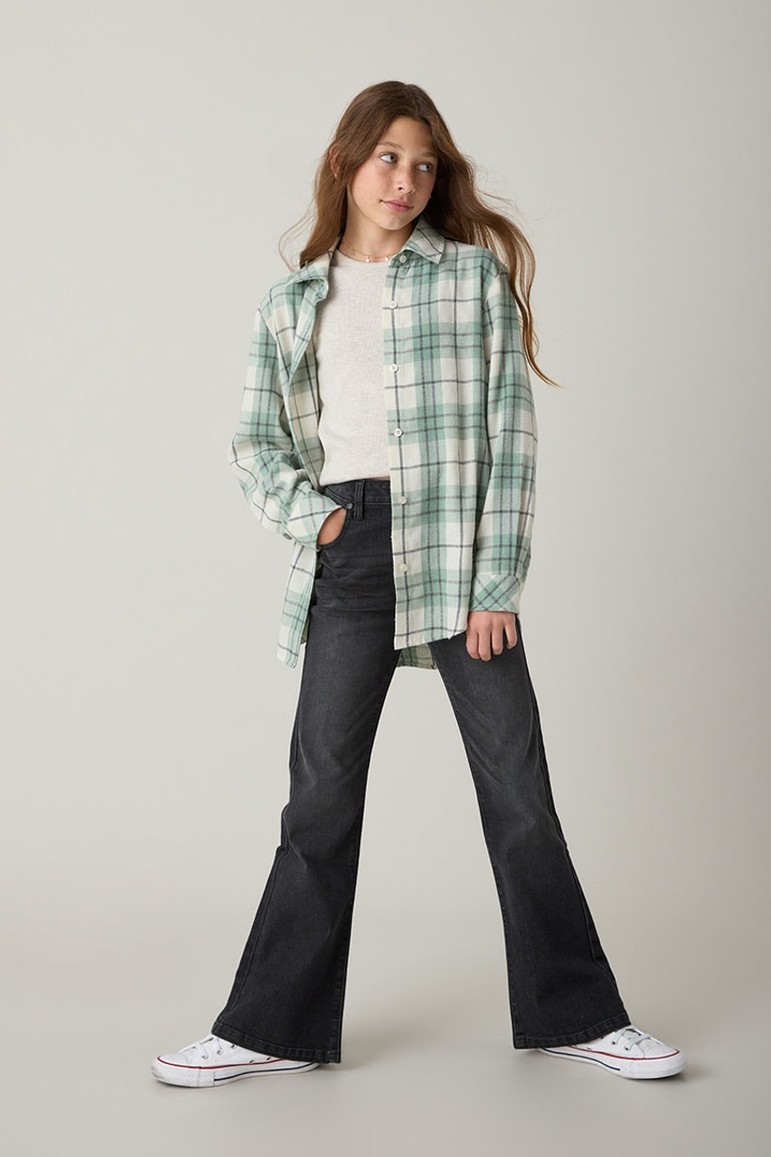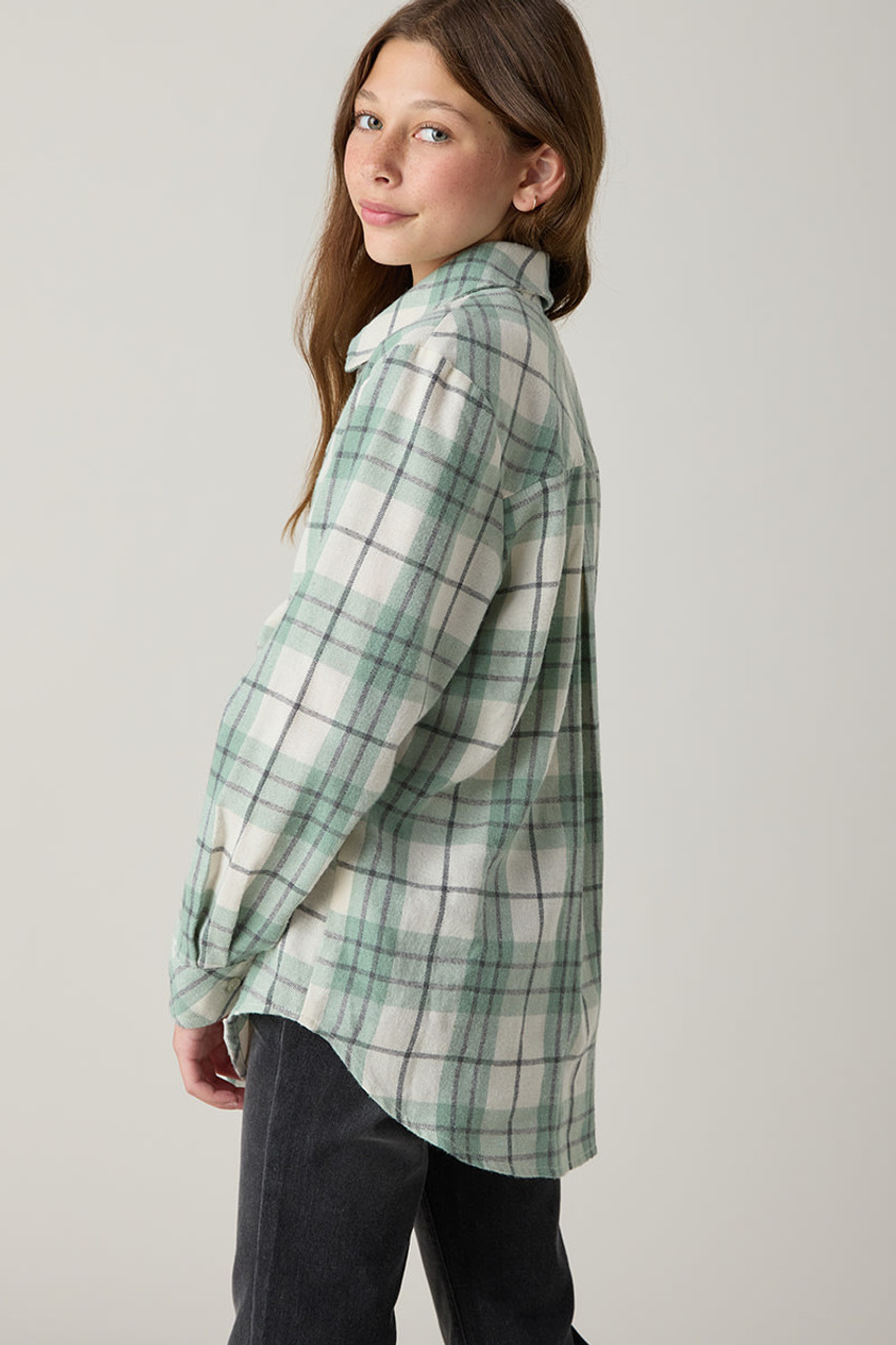 – Soft cotton flannel shirt that features a collar, long sleeves with button cuffs, and button front closure.