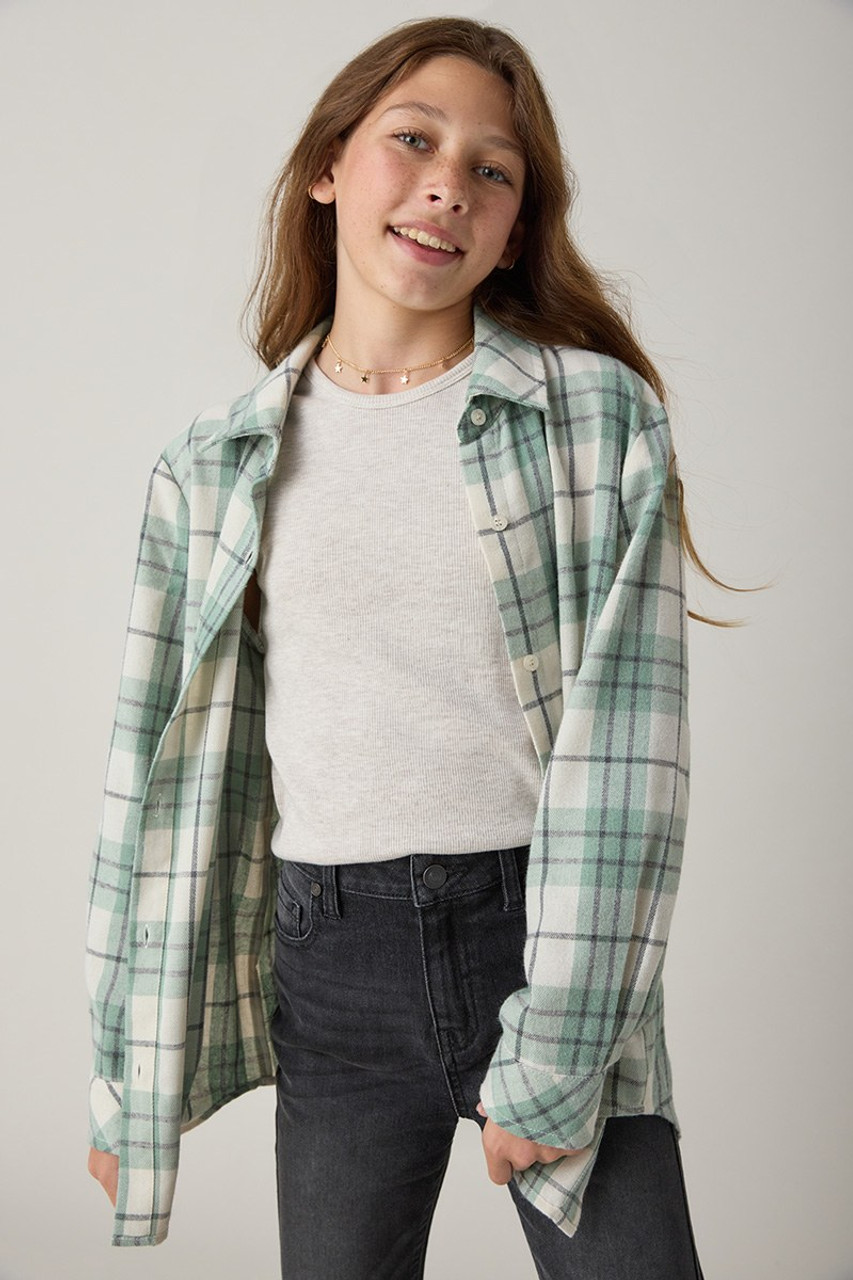– Soft cotton flannel shirt that features a collar, long sleeves with button cuffs, and button front closure.