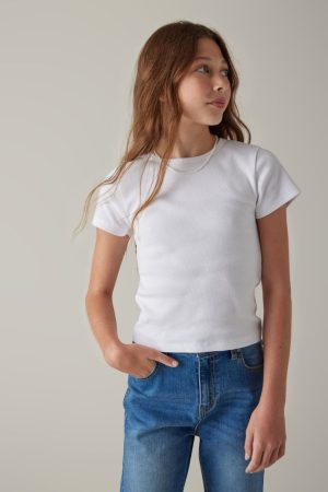 – This elevated basic is an upgrade to your favorite tee. Featuring a ribbed fabric for comfort.