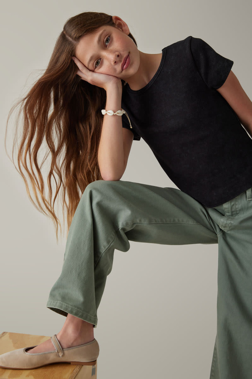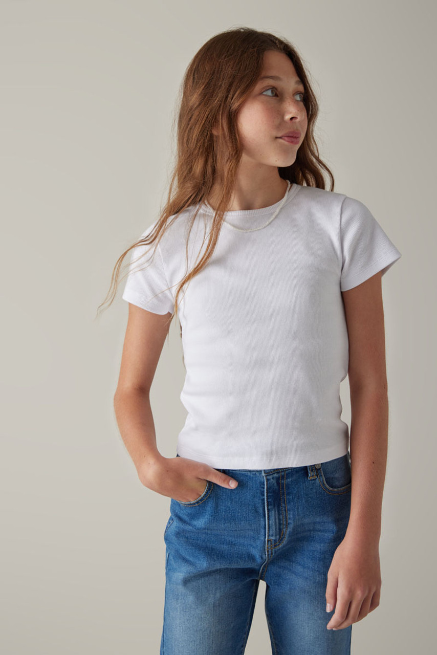 – This elevated basic is an upgrade to your favorite tee. Featuring a ribbed fabric for comfort.