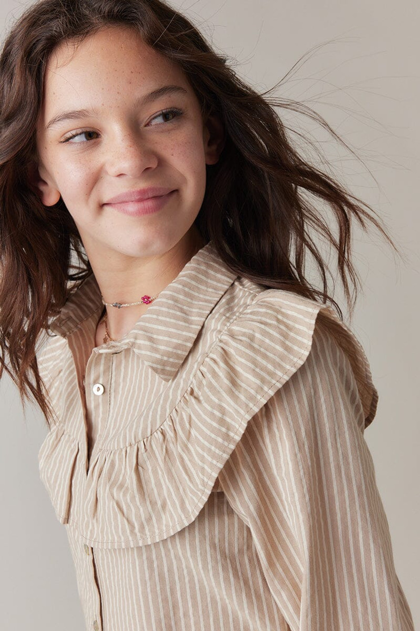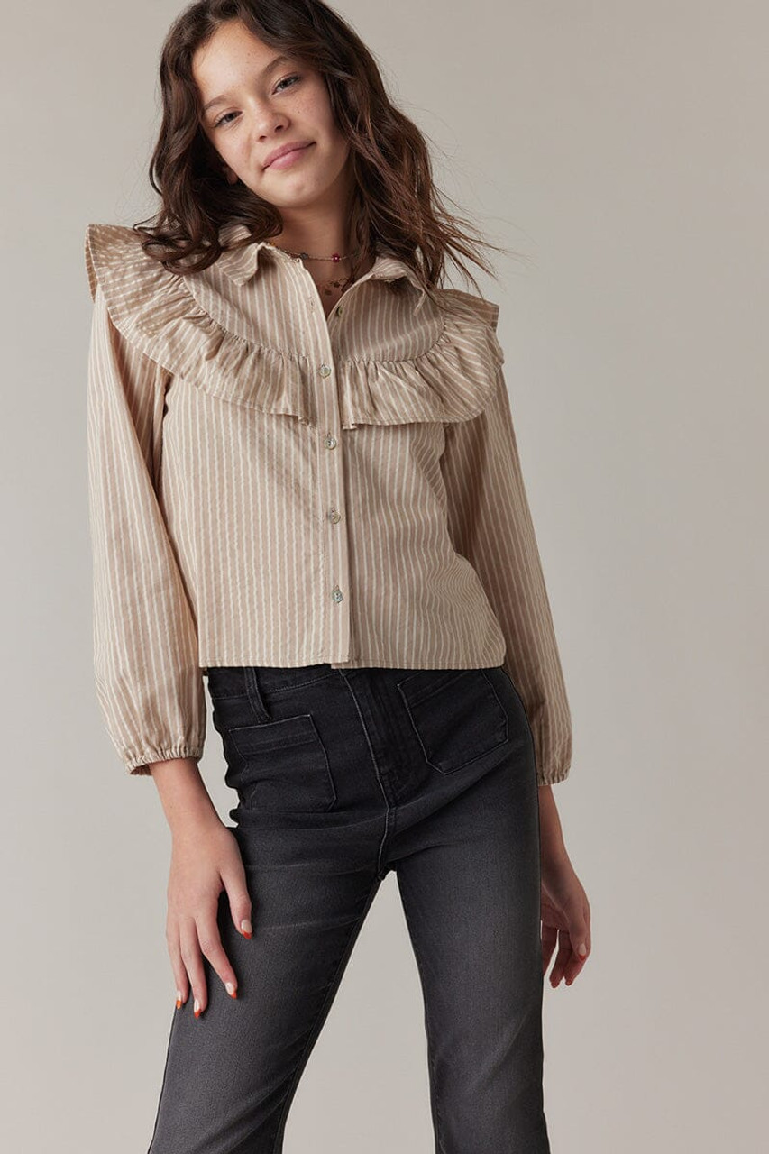 Hello Franki Ruffle Pinstripe Button Up for girls