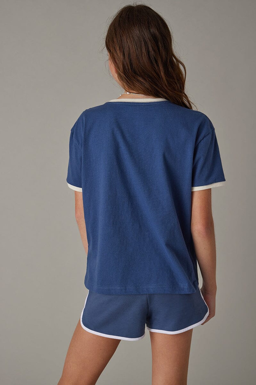 – Your favorite type of tee with ringer details around the hem of the sleeve.