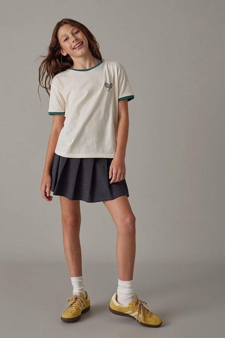 – Your favorite type of tee with ringer details around the hem of the sleeve.