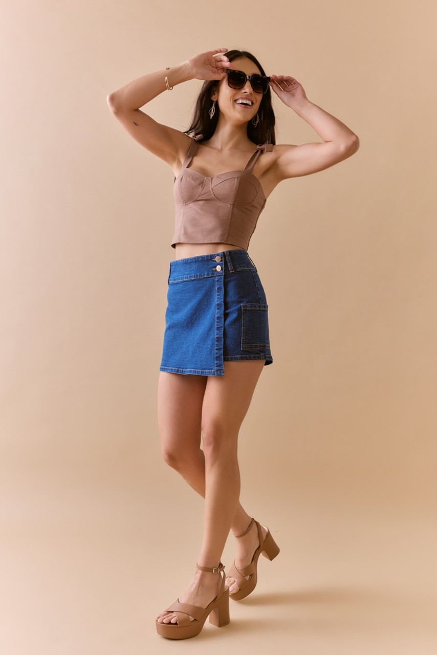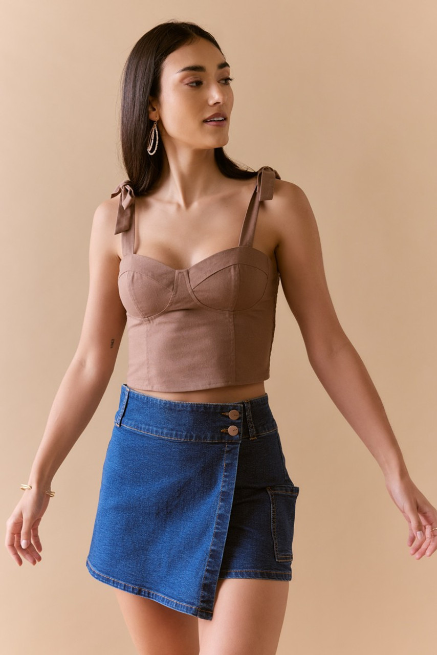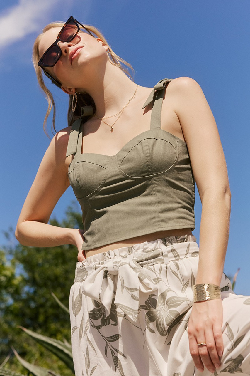 Lauren Bow Shoulder Strap Corset Tank Top
