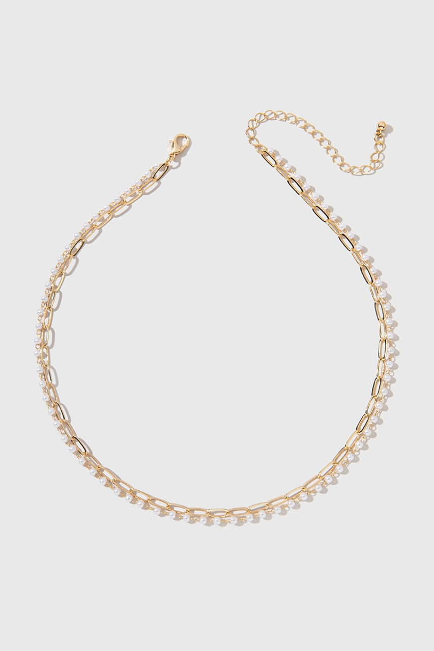 Loni Paper Clip Pearl Necklace