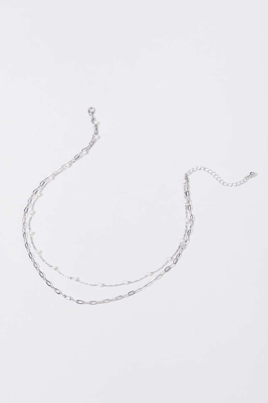 Melissa Layered Chain Link And Pearl Station Silver Necklace