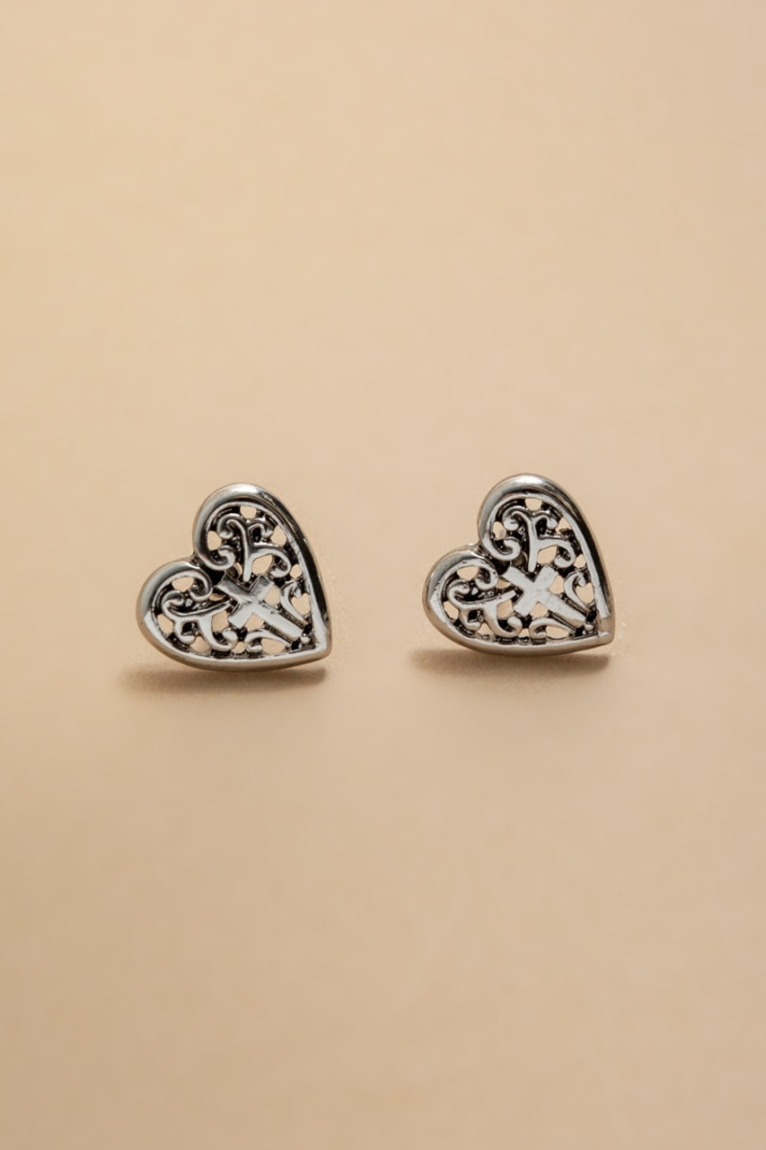 Sandra Embossed Silver Stud Earrings