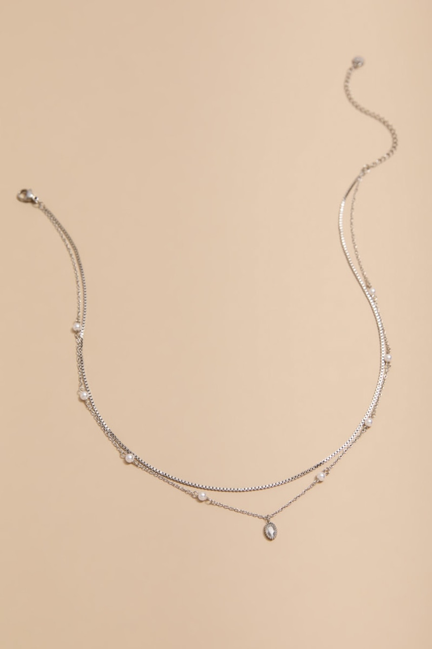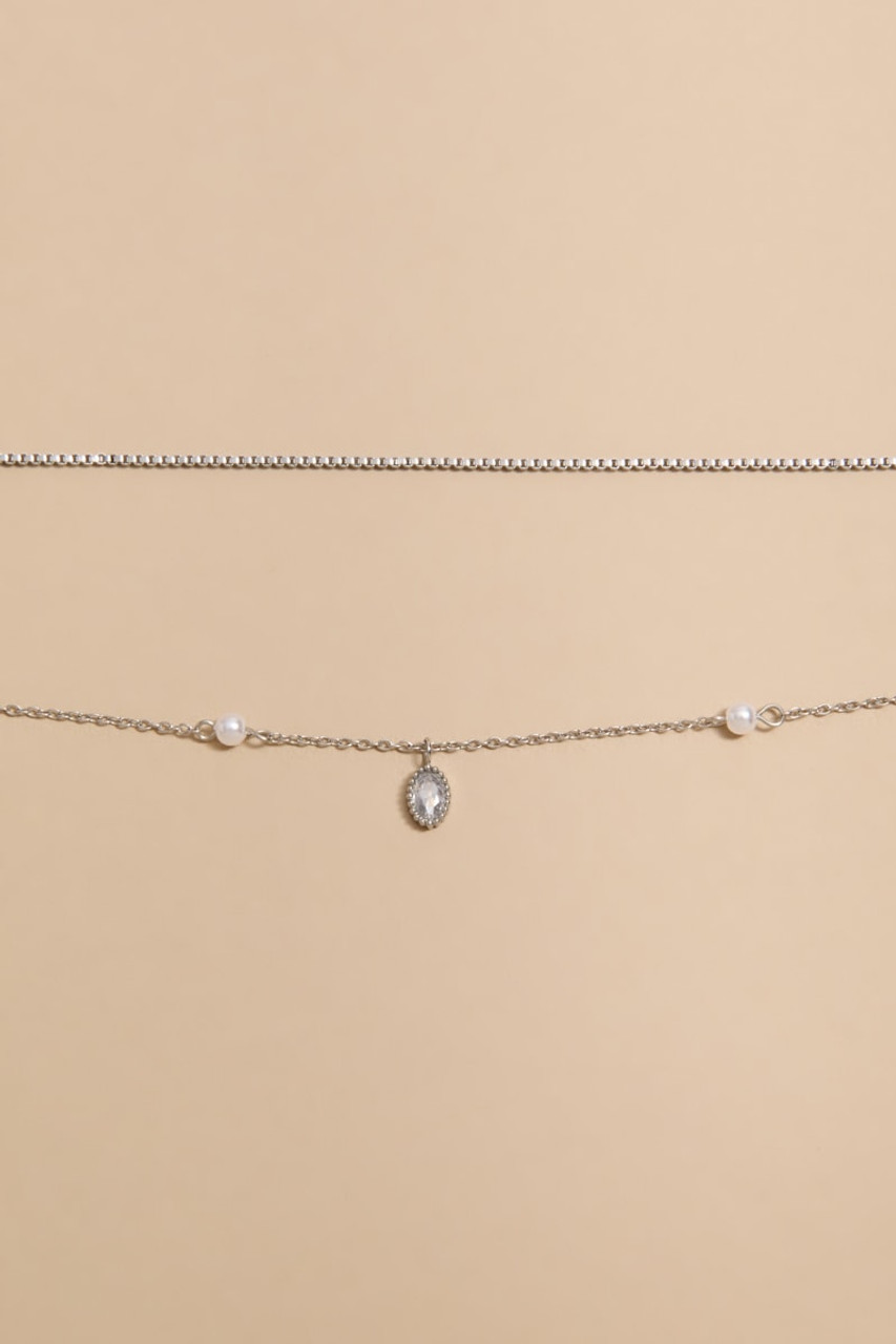Tessa Stainless Steel Layered Crystal Pendant Necklace