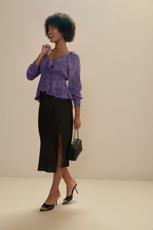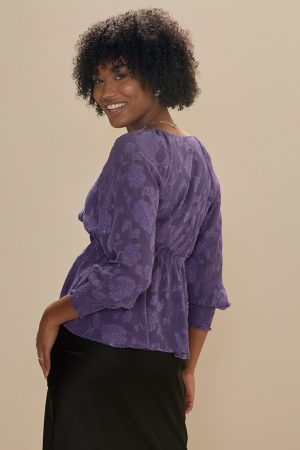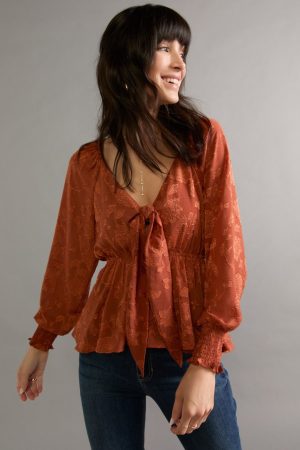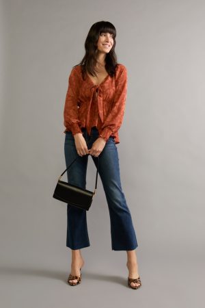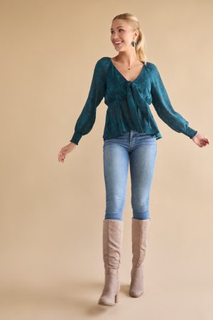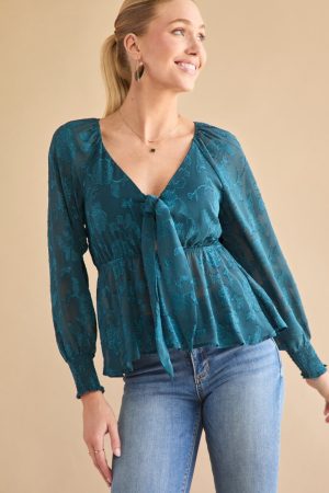 Tracy Tie Front Jacquard Long Sleeve Blouse