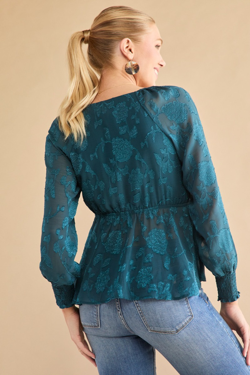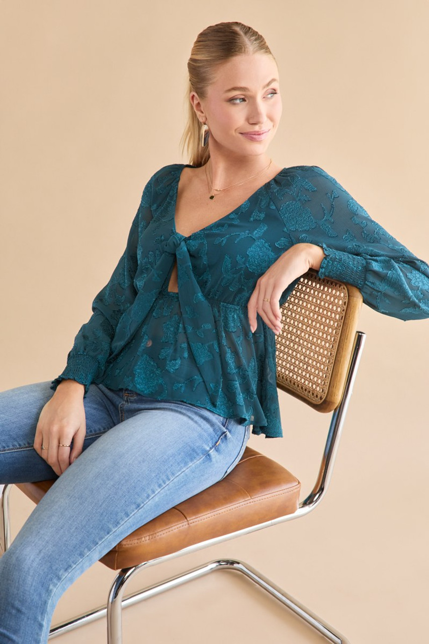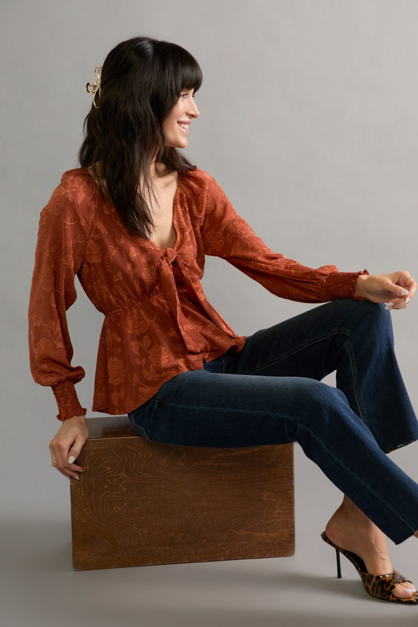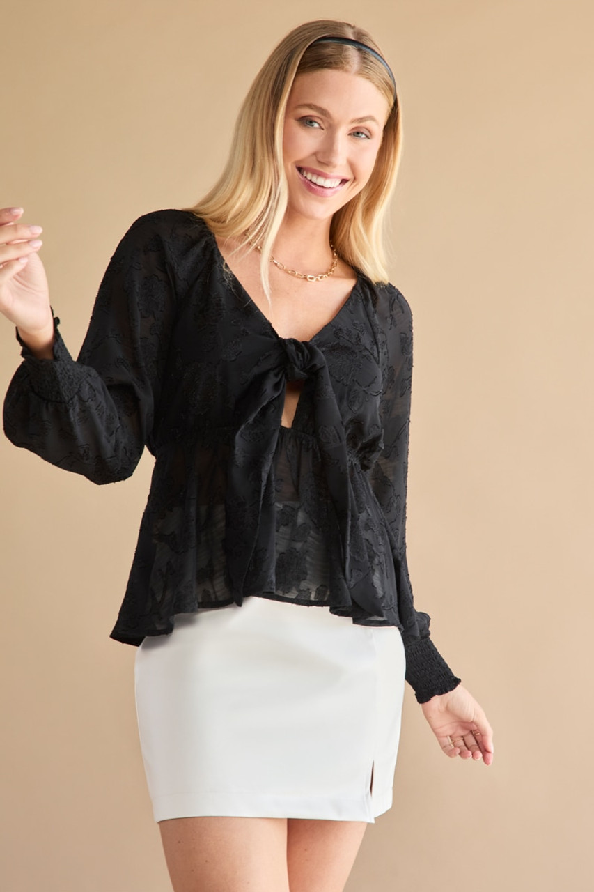 Tracy Tie Front Jacquard Long Sleeve Blouse